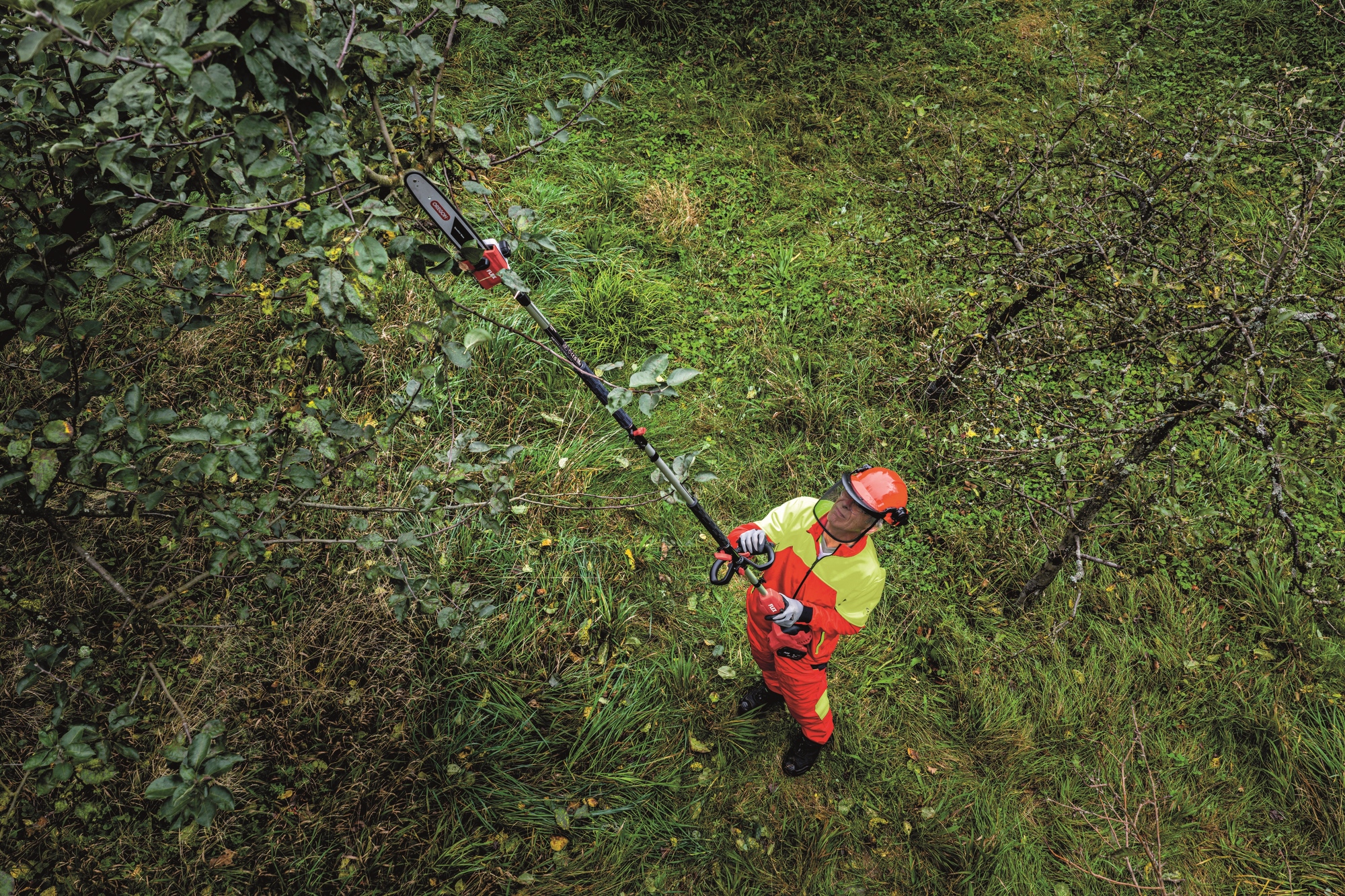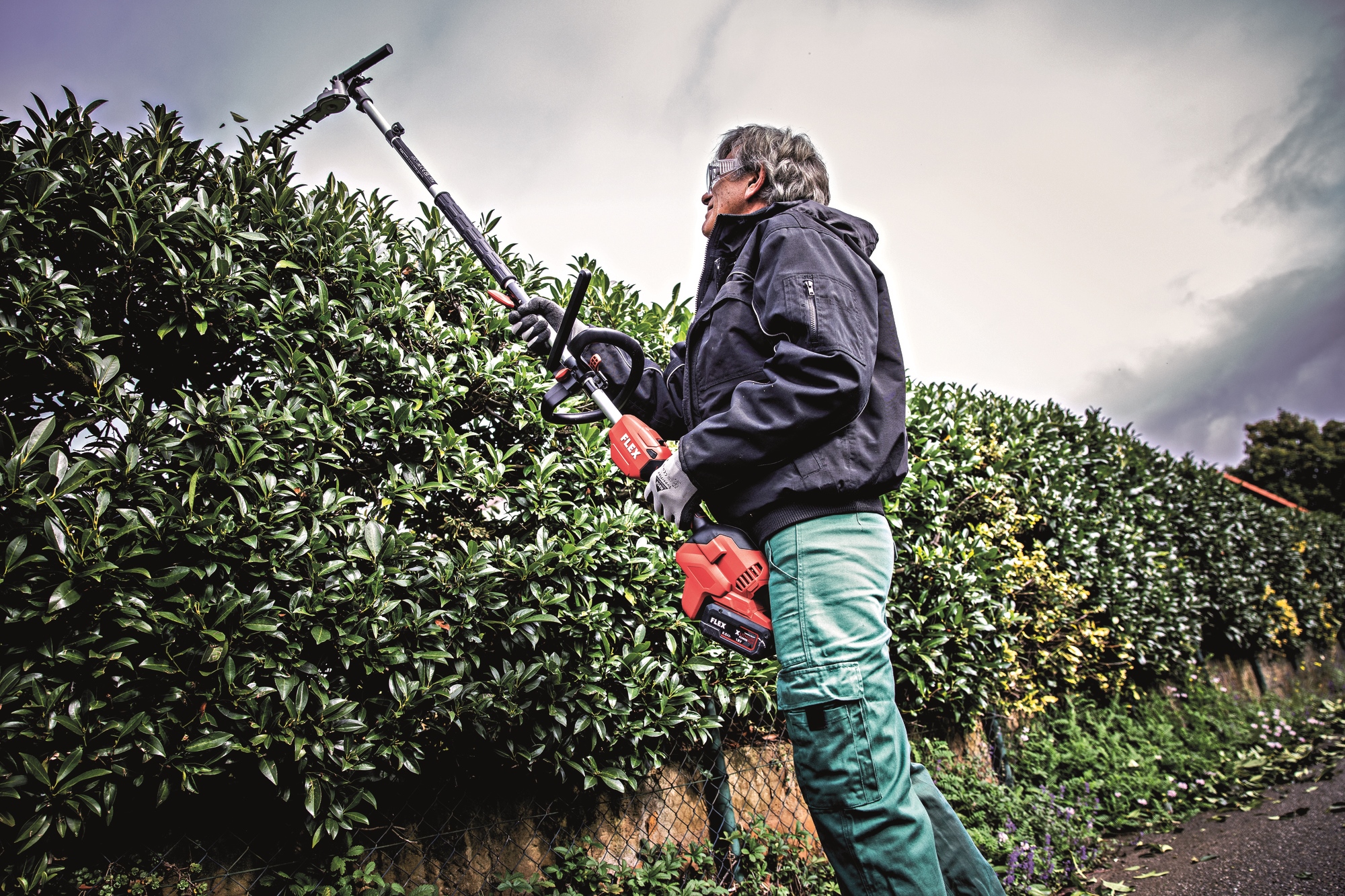 Mehr Flexibilität bei der Gartenarbeit. Die drei Vorsätze, Heckenschere, Hochentaster, Freischneider und Verlängerung lassen sich werkzeuglos in zwei Positionen montieren. Vorsätze separat als Zubehör erhältlich