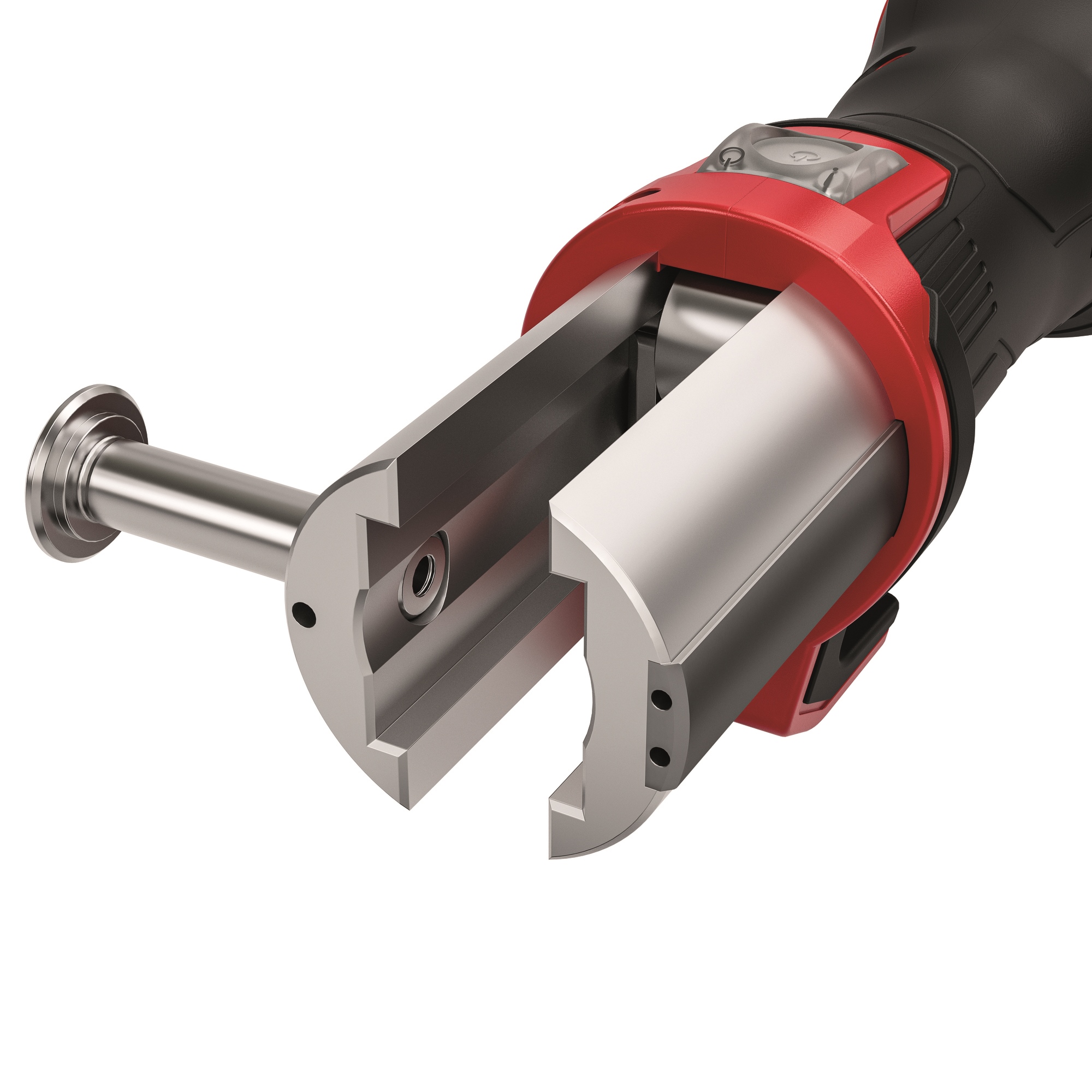 Presskraftüberwachung per LED-Anzeige und automatische Akku-Kapazitätskontrolle, mit elektronischer Haltebolzen-Sicherung, automatischer und exakter Verpressung