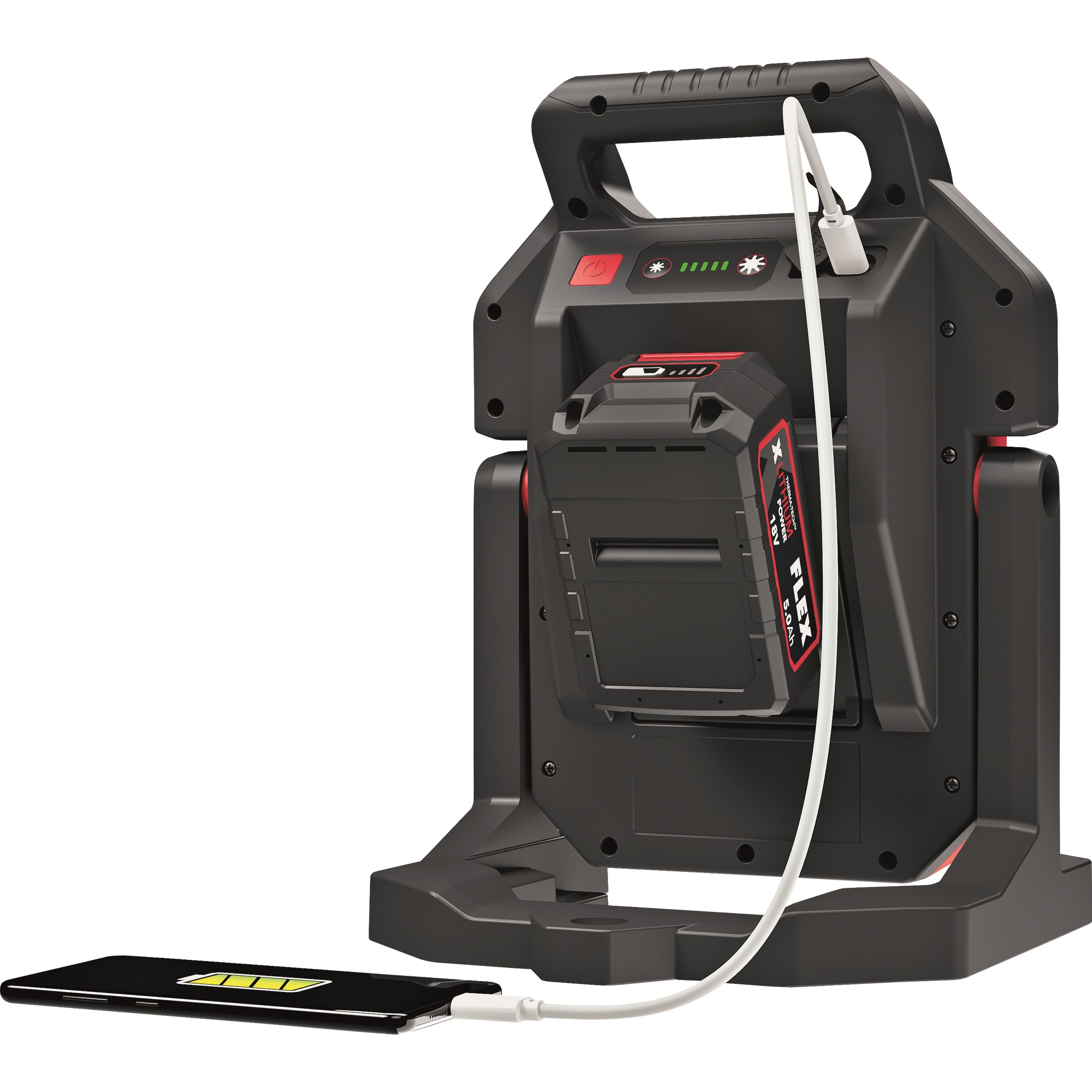 Il sistema batteria FLEX è utilizzabile con tutte le batterie da FLEX 10.8V e 18V. Fornito senza batteria, caricabatteria