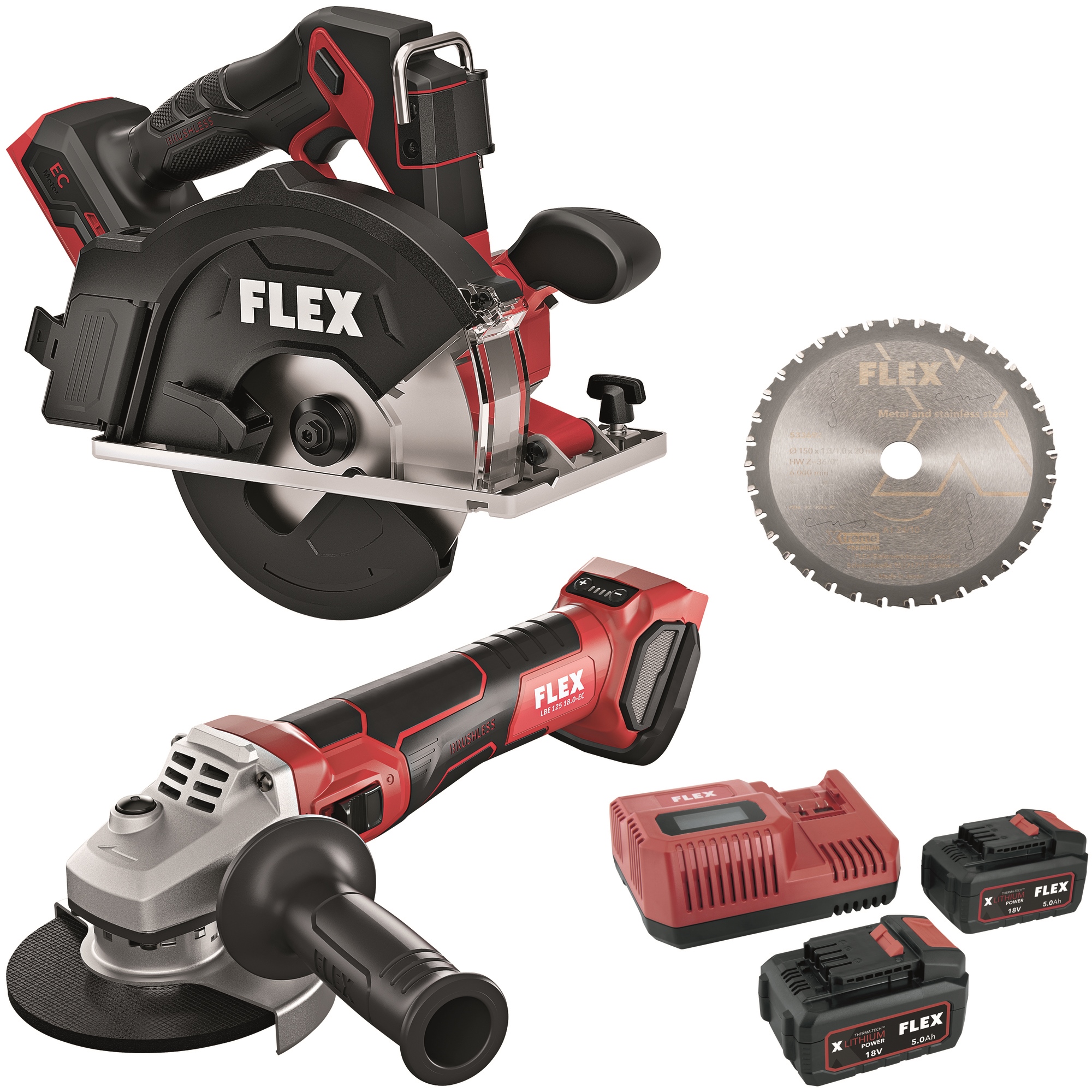 FLEX CSM 57 18-EC + LBE 125 18.0-EC – Akku-Metallkreissäge & Akku-Winkelschleifer Set