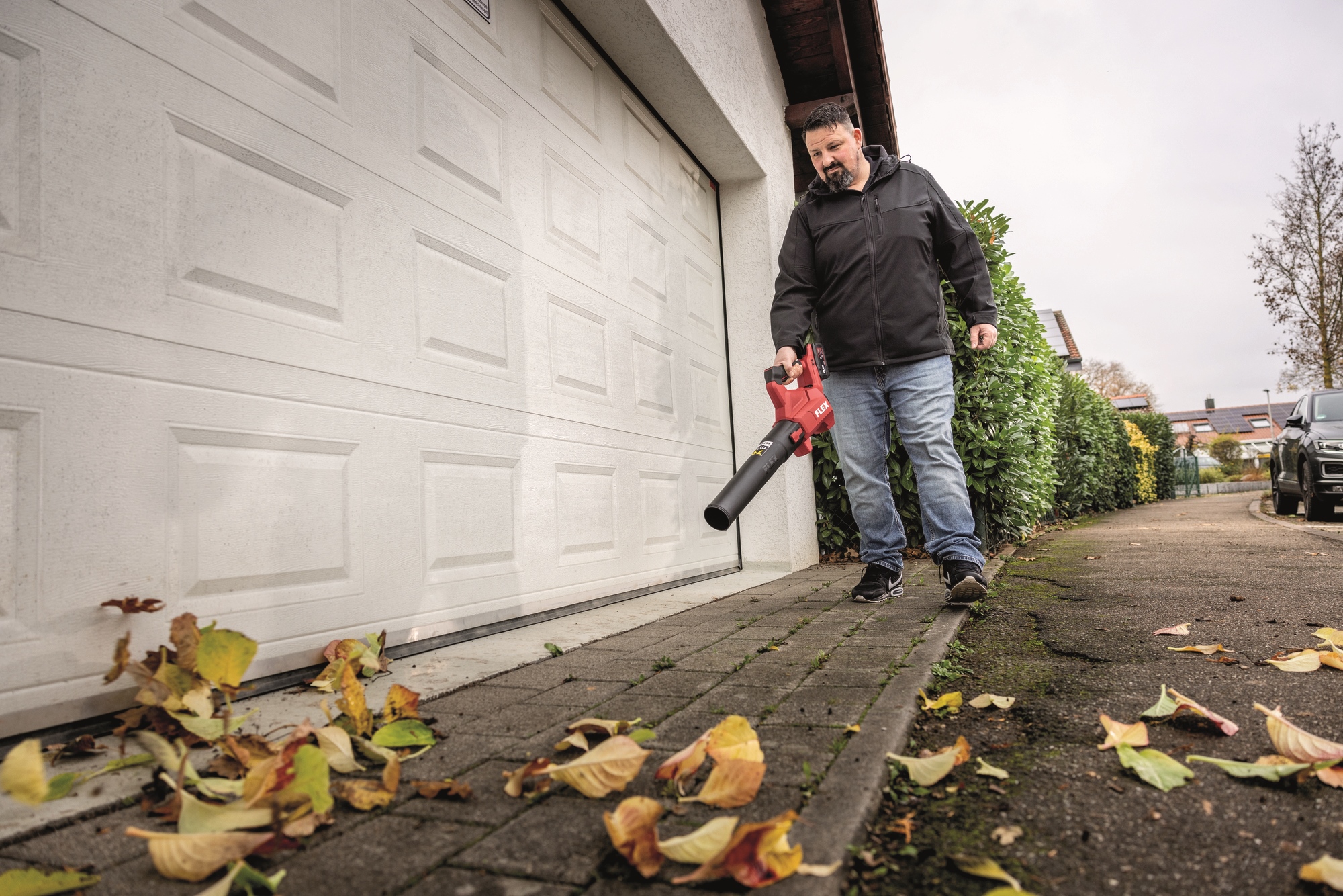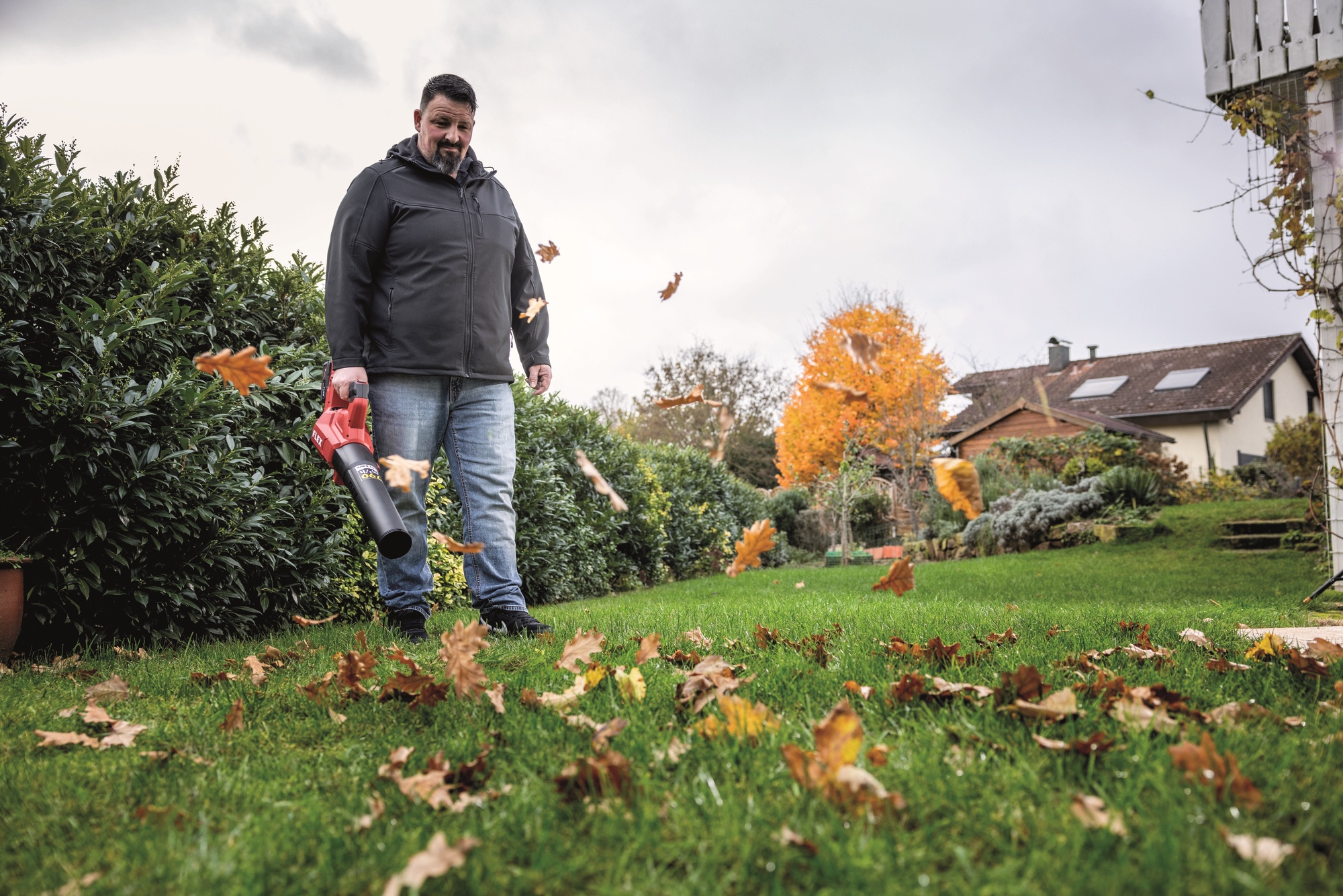 Luftmengenregulierung in 3 Stufen mit Boost-Modus zum Räumen von Laub auf kleinen bis mittelgroßen Flächen