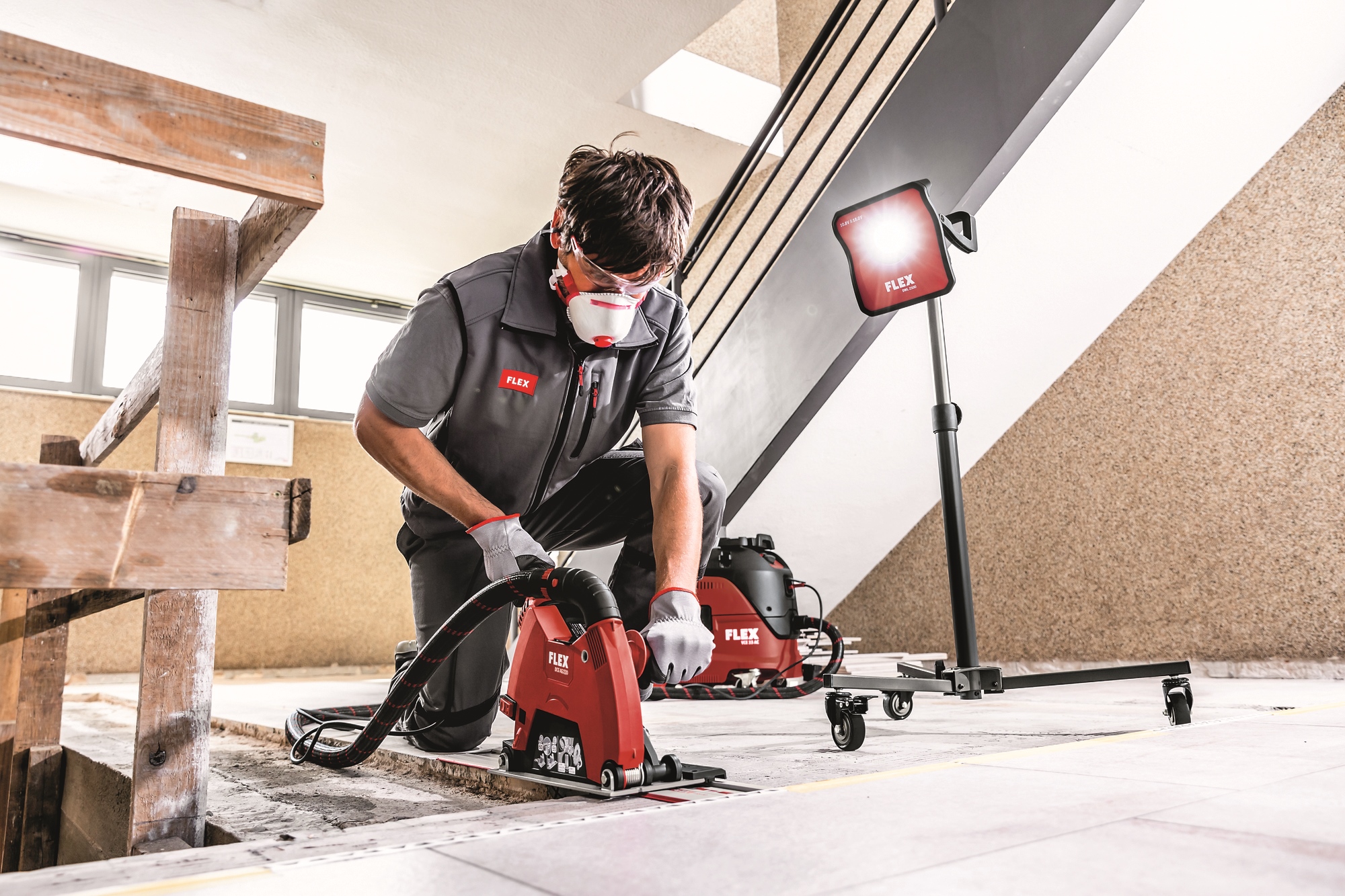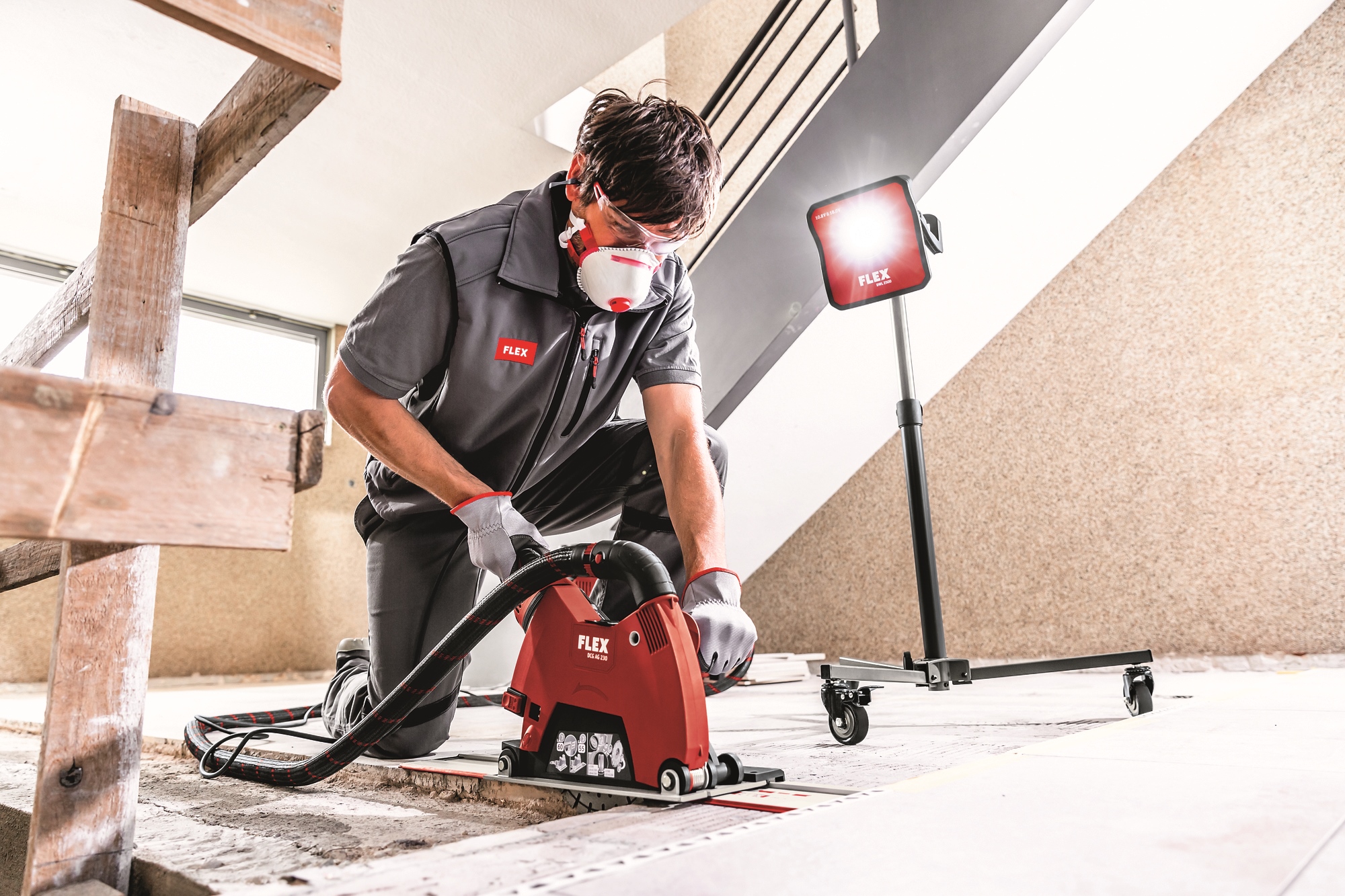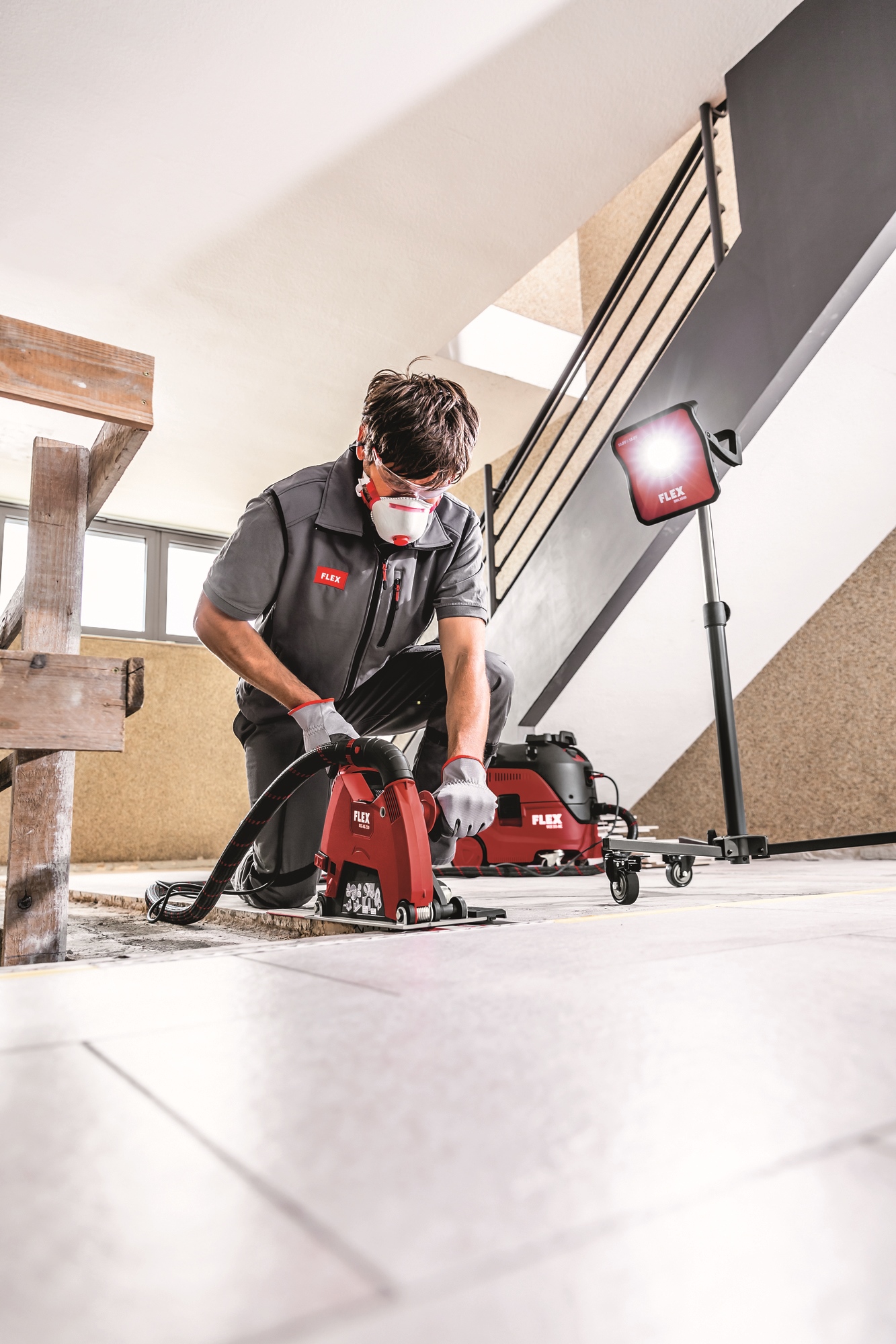 Sofort startklar, Winkelschleifer mit bereits montierter Absaughaube im Koffer. Diamantjet - Diamanttrennscheibe Standard Beton 230 mm inklusive