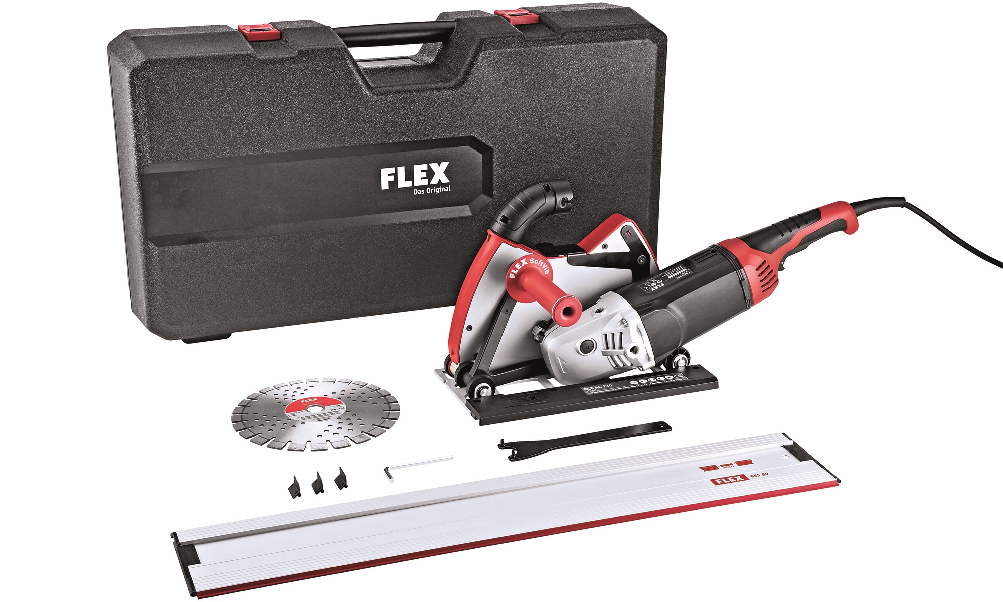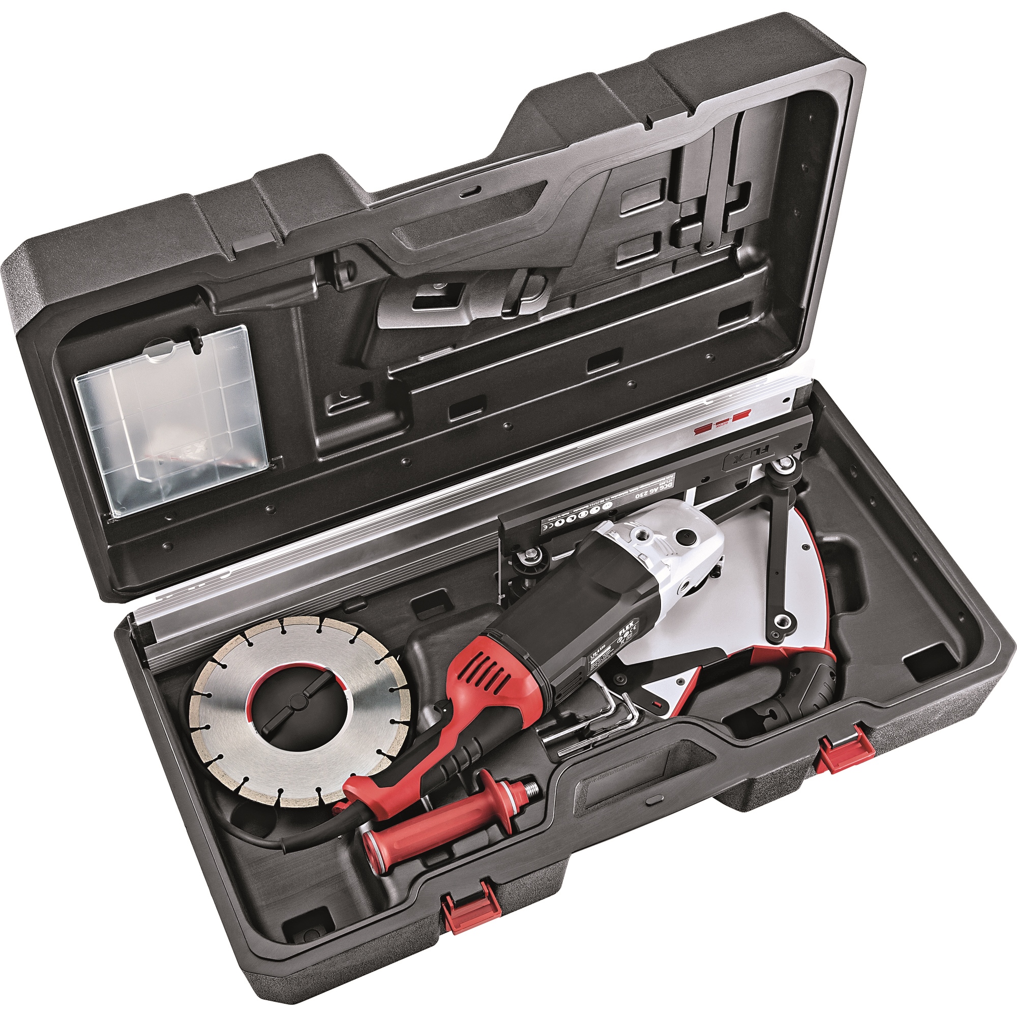 Koffer inklusive Deckelfach für Kleinteile, Ablagemöglichkeit für Diamanttrennscheibe, Seitenhandgriff und 800 mm Führungsschiene