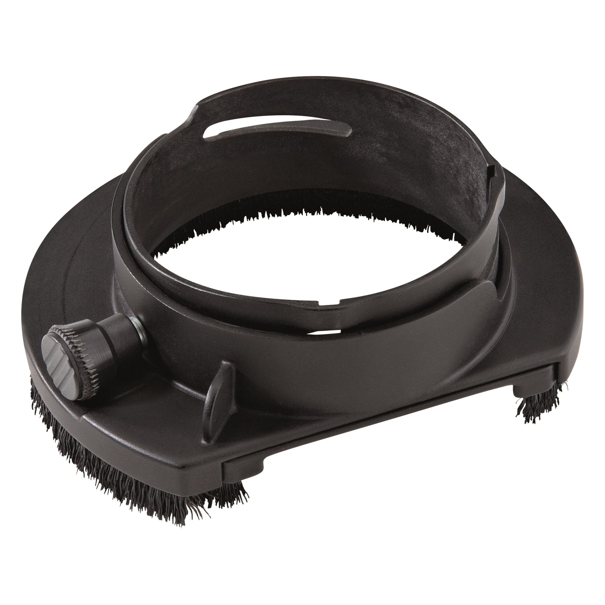 Mit Schwenksegment und Bürstenkranz für Schleifarbeiten.