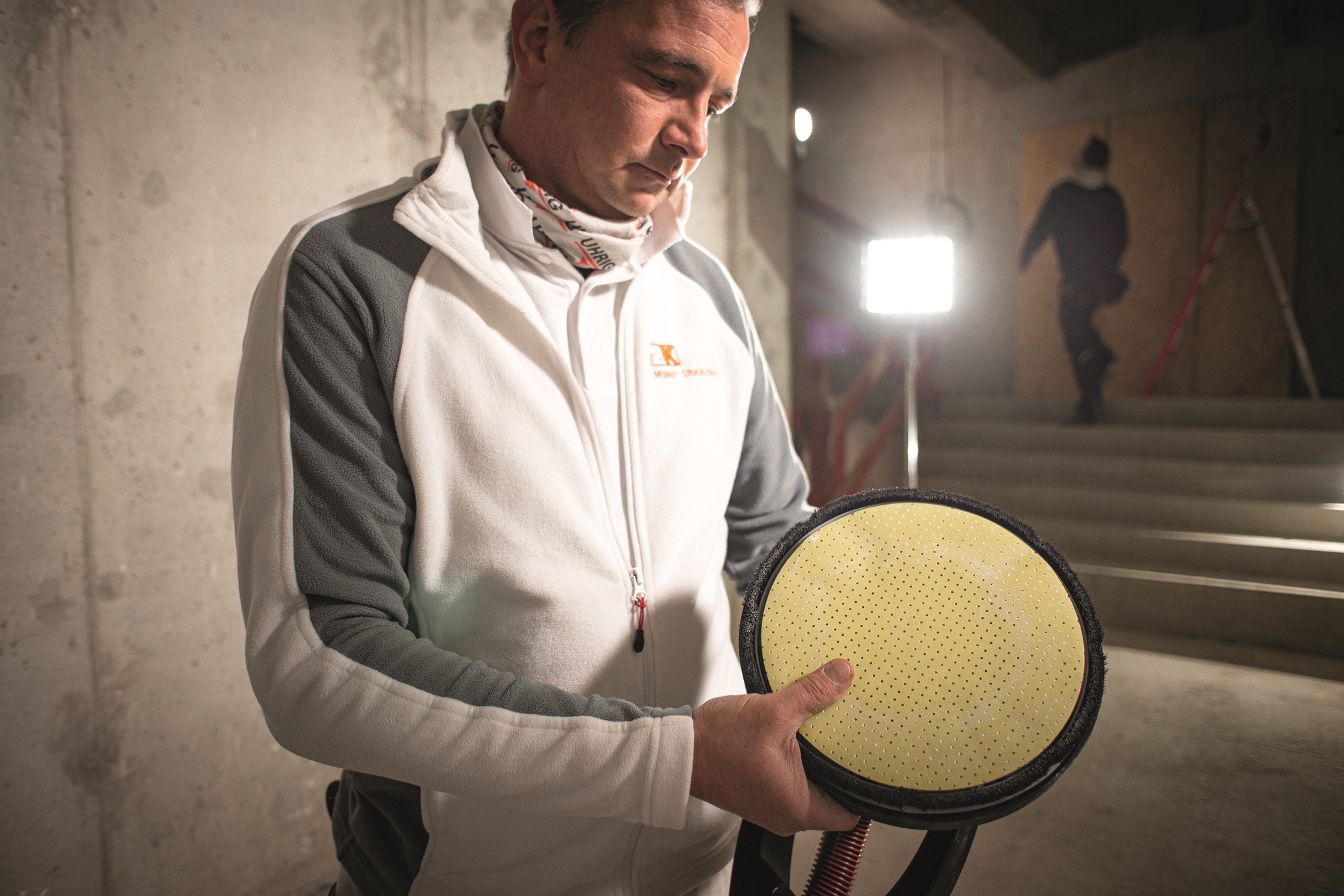 L'aspiration efficace entre la couronne de brosses et le plateau de ponçage empêche l'encrassement de l'abrasif et garantit un travail sans poussière.