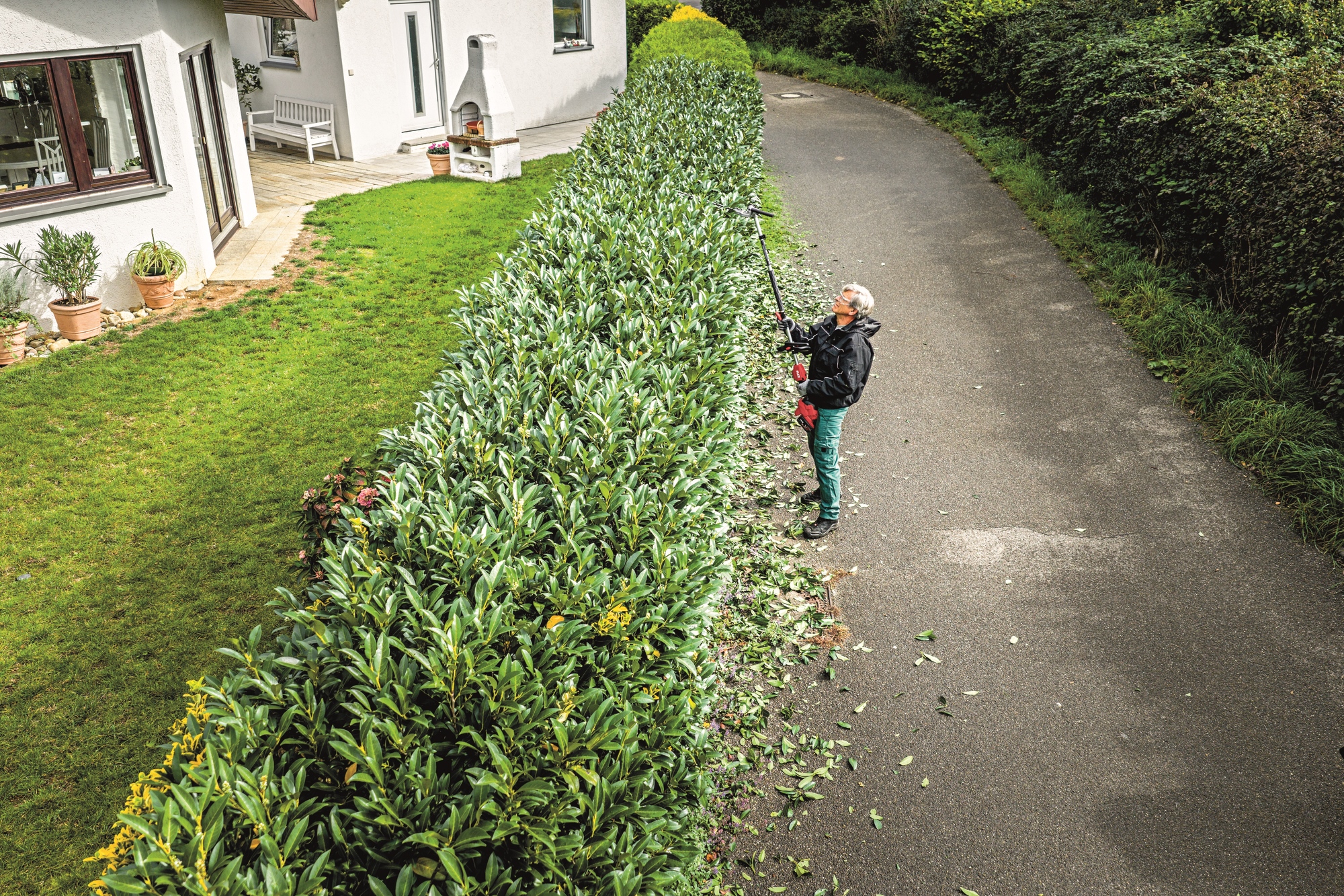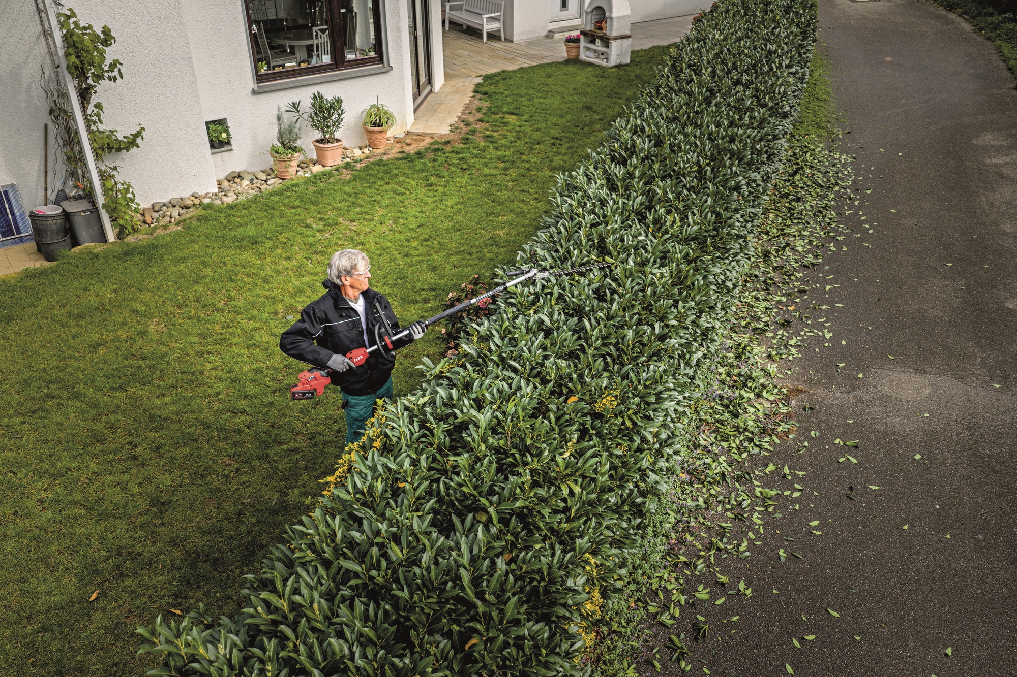 Ideale per siepi alte o basse. Con una lunghezza totale di 137 cm e 12 angoli di taglio regolabili, questo accessorio è esattamente ciò che vi serve, qualunque sia la dimensione o la forma della vostra siepe. Disponibile estensione opzionale di 80 cm